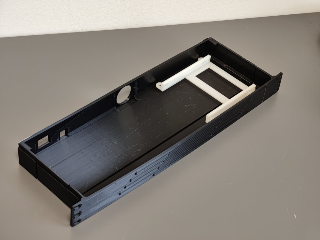 After realizing that a 1 unit tall 19″ server hardware would fit diagonally on my larger 400x400mm 3D-printer, I just had to make something. For that something I happened to have unused hardware laying around. The result was a shallow 1U server case to house a raspberry pi and a 3.5″ HDD, along with all the other necessary components. Currently this server is running as StorJ storage node with a 10TB HDD.